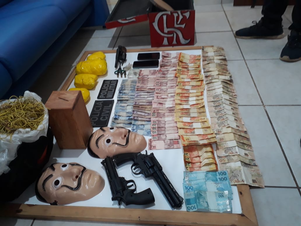 Ainda de acordo com o delegado, foram apreendidos aproximadamente 2,5kg de drogas, R$ 2.700,00, um revólver .38, dois simulacros de arma de fogo e material para embalo do entorpecente.