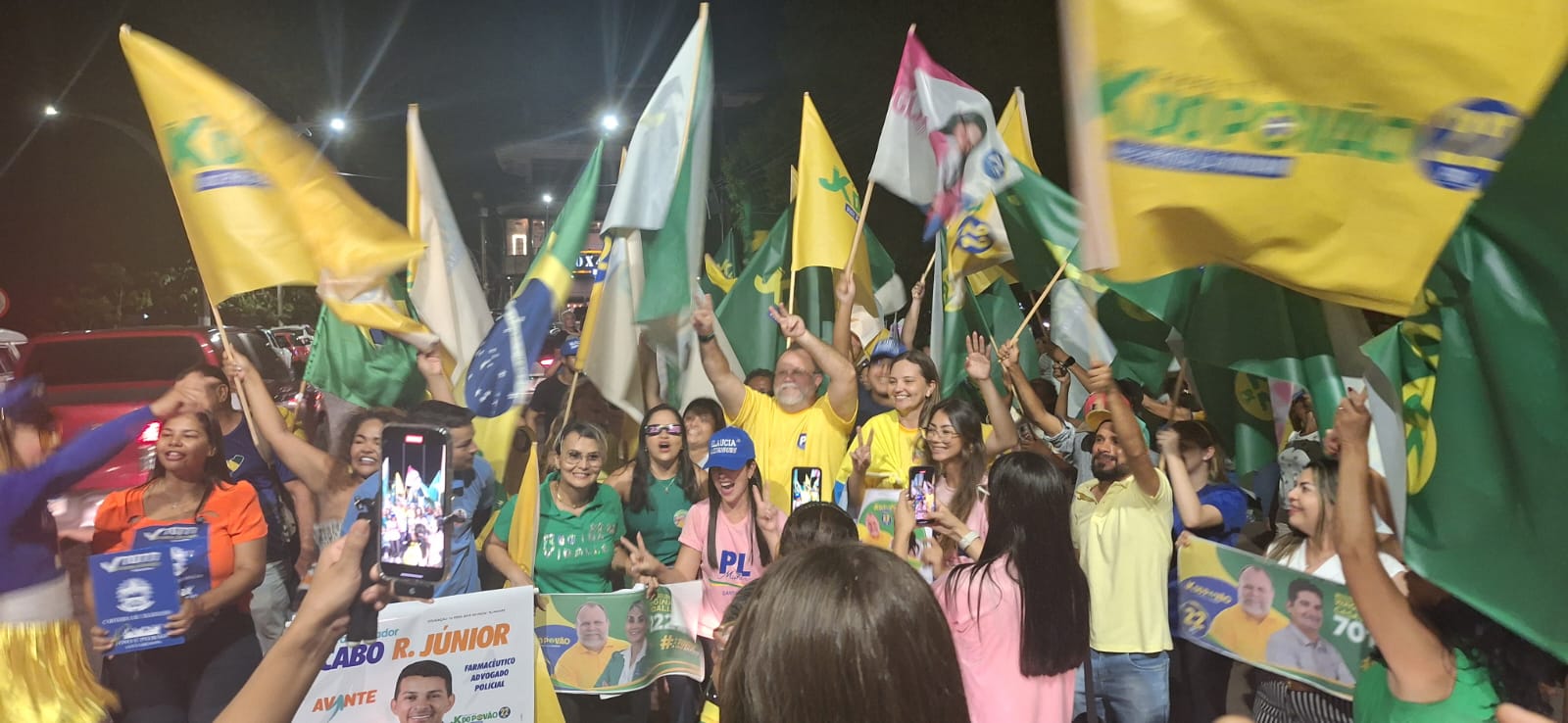 À noite, a concentração foi na avenida Adriano Pimentel, nas proximidades do Centro Cultural João Fonna. O evento contou com a presença do candidato JK do Povão, que conversou com populares, posou para fotos com apoiadores e ajudou na adesivação dos veículos. A candidata a vice-prefeita Priscilla Noimann (Avante), também marcou presença no ‘adesivaço’, que reuniu centenas de pessoas na orla da cidade.